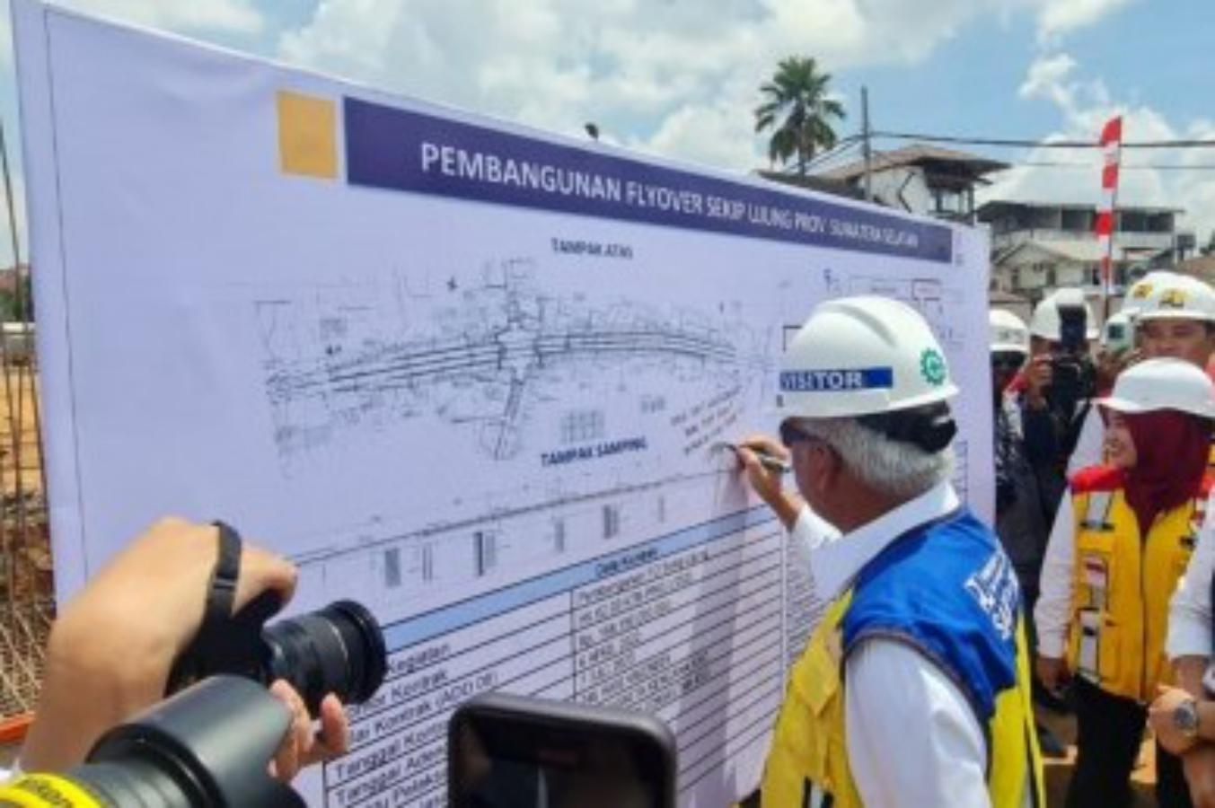 Pekerjaan fisik flyover dikerjakan Balai Besar Pelaksanaan Jalan Nasional (BBPJN) Sumatera Selatan, Direktorat Jenderal (Ditjen) Bina Marga dengan kontraktor PT. Waskita Karya dan PT. Kencana (KSO) dengan dana yang bersumber dari Surat Berharga Syariat Negara senilai Rp152 miliar.Berdasarkan data, hingga saat ini progres fisiknya mencapai 46,39%.