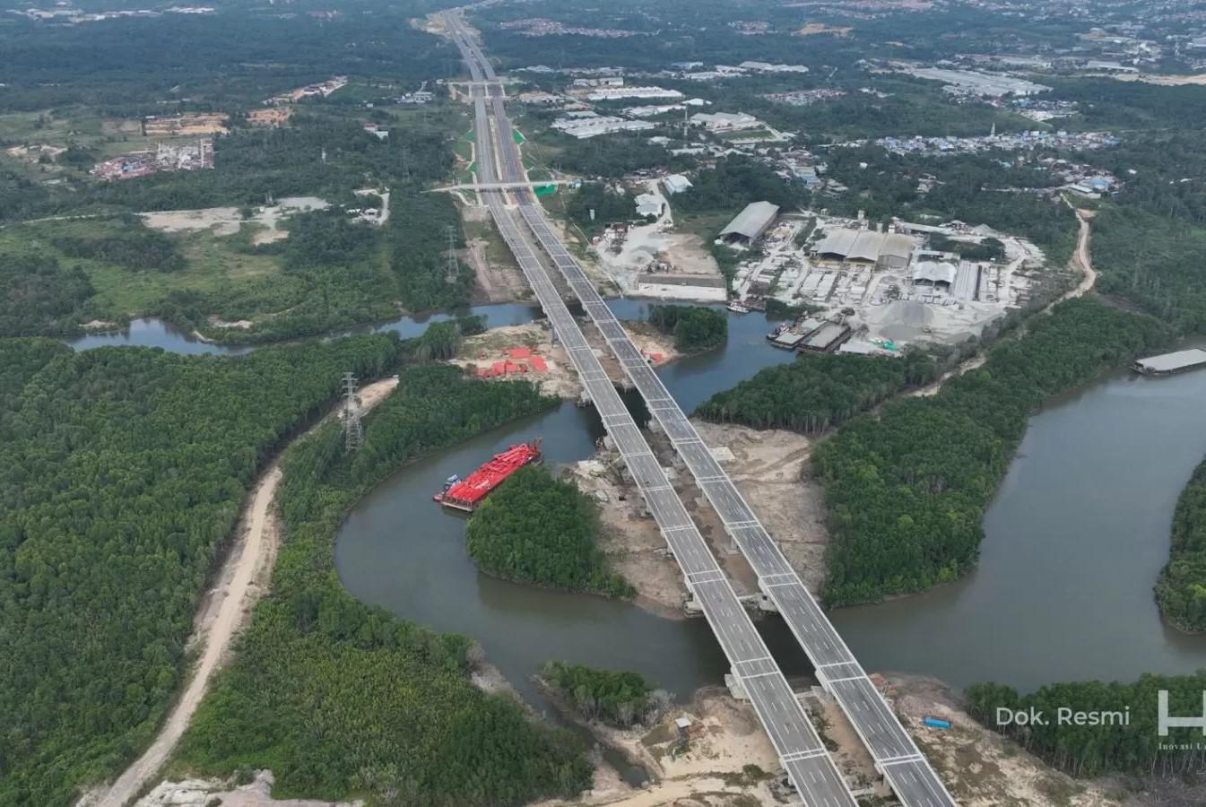 “Ini akan menjadi satu-satunya jalan tol di Indonesia yang tiga kali melewati sungai berkelok dan dilintasi kapal tongkang,” imbuh Adjib.