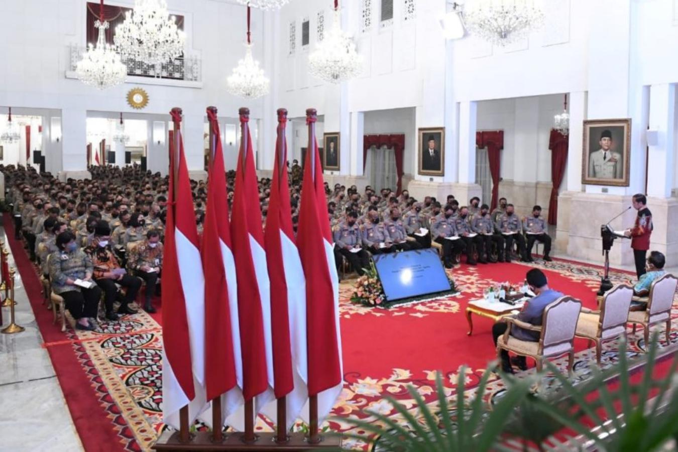Sukoharjonews.com (Jakarta) – Presiden RI Joko Widodo (Jokowi) menyampaikan sedikitnya lima arahan kepada jajaran Kepolisian Negara Republik Indonesia (Polri), mulai dari para pejabat utama Mabes Polri, kepala kepolisian daerah (kapolda), hingga kepala kepolisian resor (kapolres) seluruh tanah air, di Istana Negara, Jakarta, Jumat (14/10/2022)/