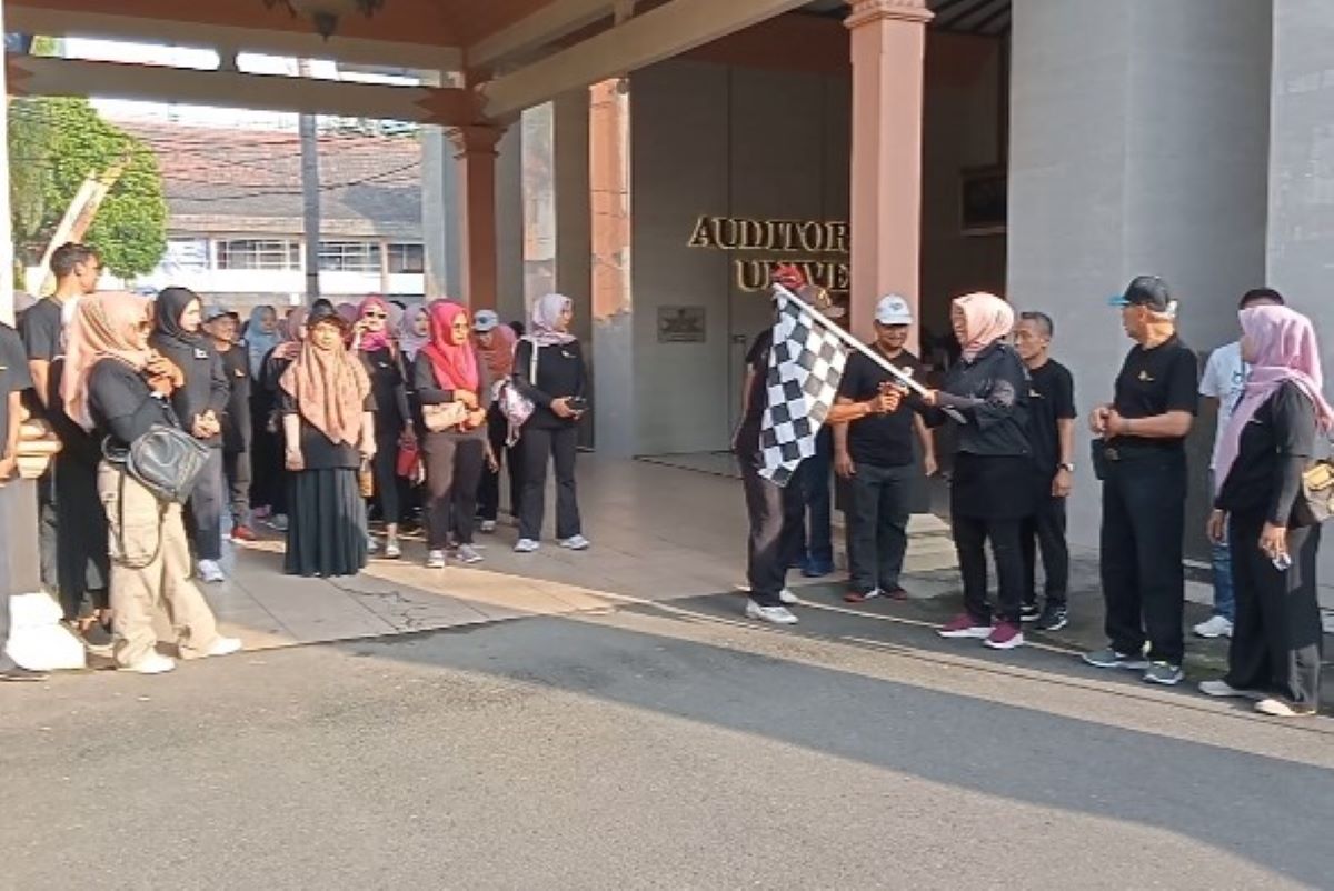 Jalan sehat ini diberangkatkan oleh Rektor Univet Bantara Sukoharjo, Prof Farida Nugrahani didampingi Ketua Pembina YPPP Veteran beserta pengurus.