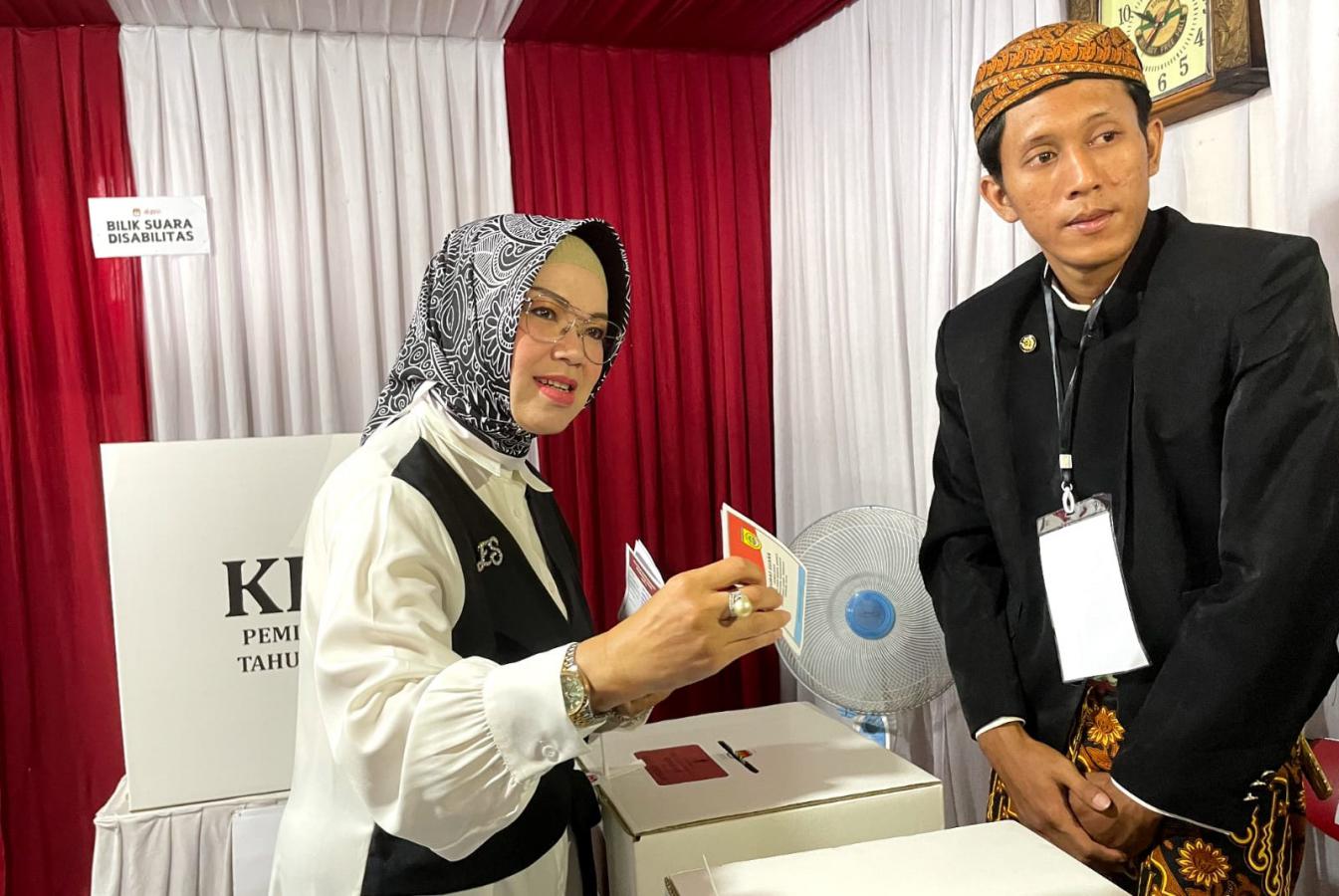 Usai menggunakan hak pilihnya, Etik mengaku sengaja datang pagi karena ada kegiatan pantauan di sejumlah TPS bersama Forkopimda.