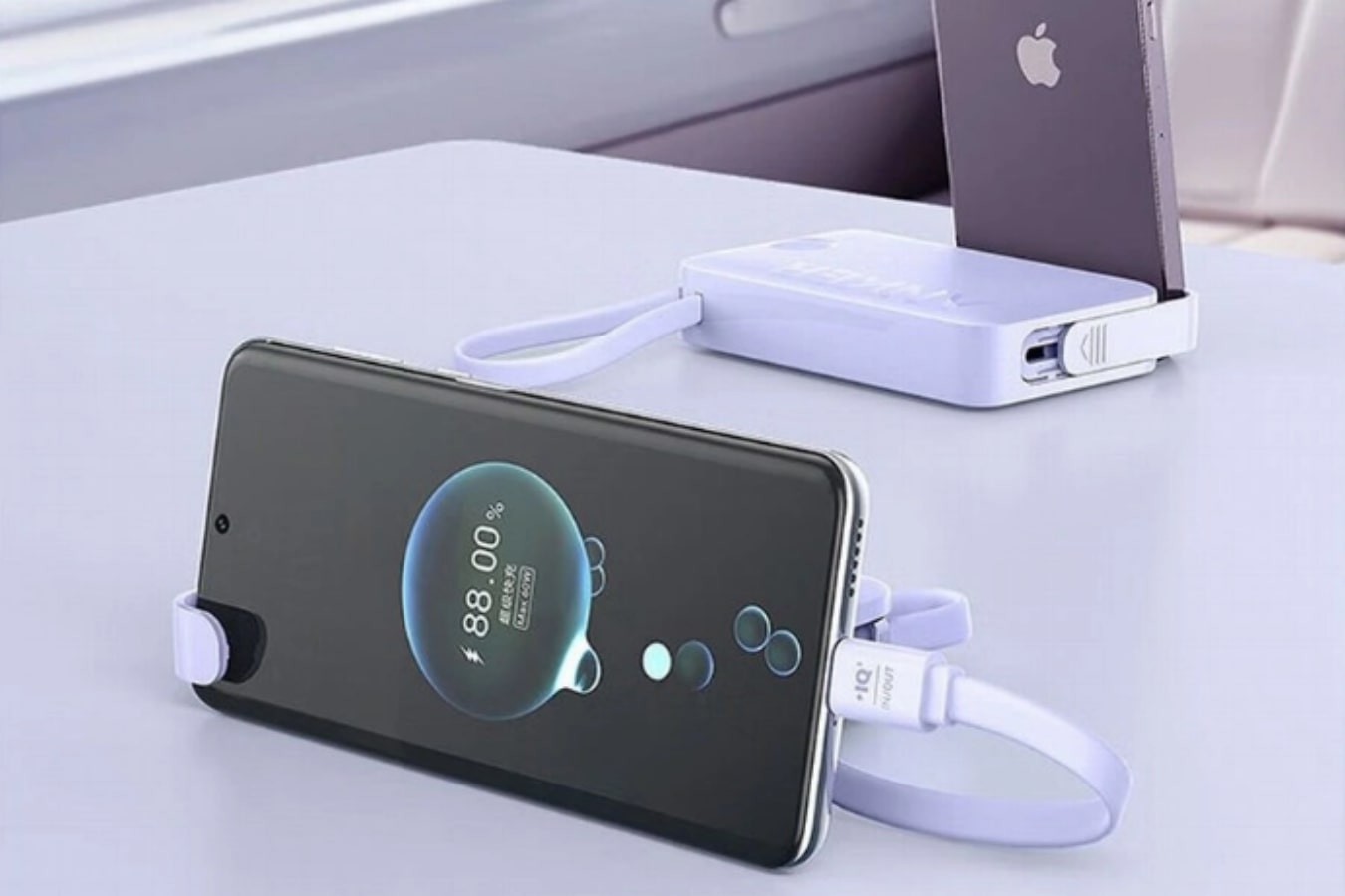 Kabel pengisi daya sekuat dan tahan lama. Itu dapat menahan hingga 10.000 kali tekukan. Power bank ini juga dilengkapi dudukan ponsel melalui struktur geser di sisinya. Saat ditarik keluar, platform tersebut dapat digunakan untuk mengamankan ponsel baik secara horizontal maupun vertikal.