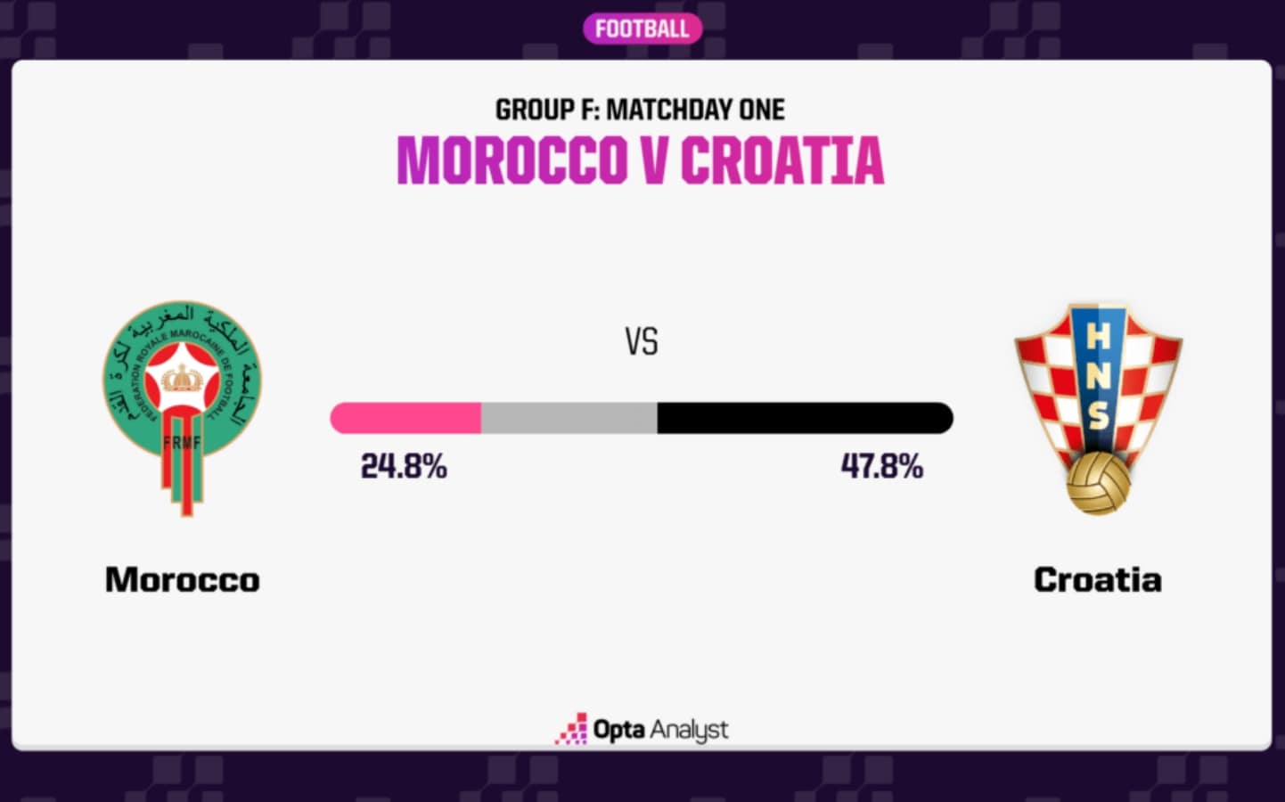 Menurut superkomputer Opta, tim asuhan Dalić, Kroasia memiliki peluang 47,8% untuk memulai kampanye mereka dengan kemenangan, terlepas dari rekor masa lalu mereka yang tidak sempurna di pertandingan pembuka Piala Dunia.