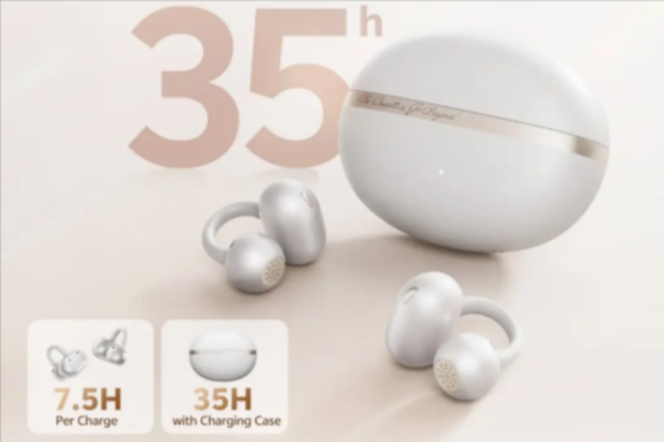 Earbud ini memiliki form factor clip-on open-ear dan dilengkapi bantalan cloud yang lembut, ruang belakang 168°, serta sistem penyangga tiga titik dengan kawat titanium memori. QCY mengklaim struktur ini mengurangi tekanan pemakaian hingga 56% sekaligus menjaga kesesuaian yang aman.