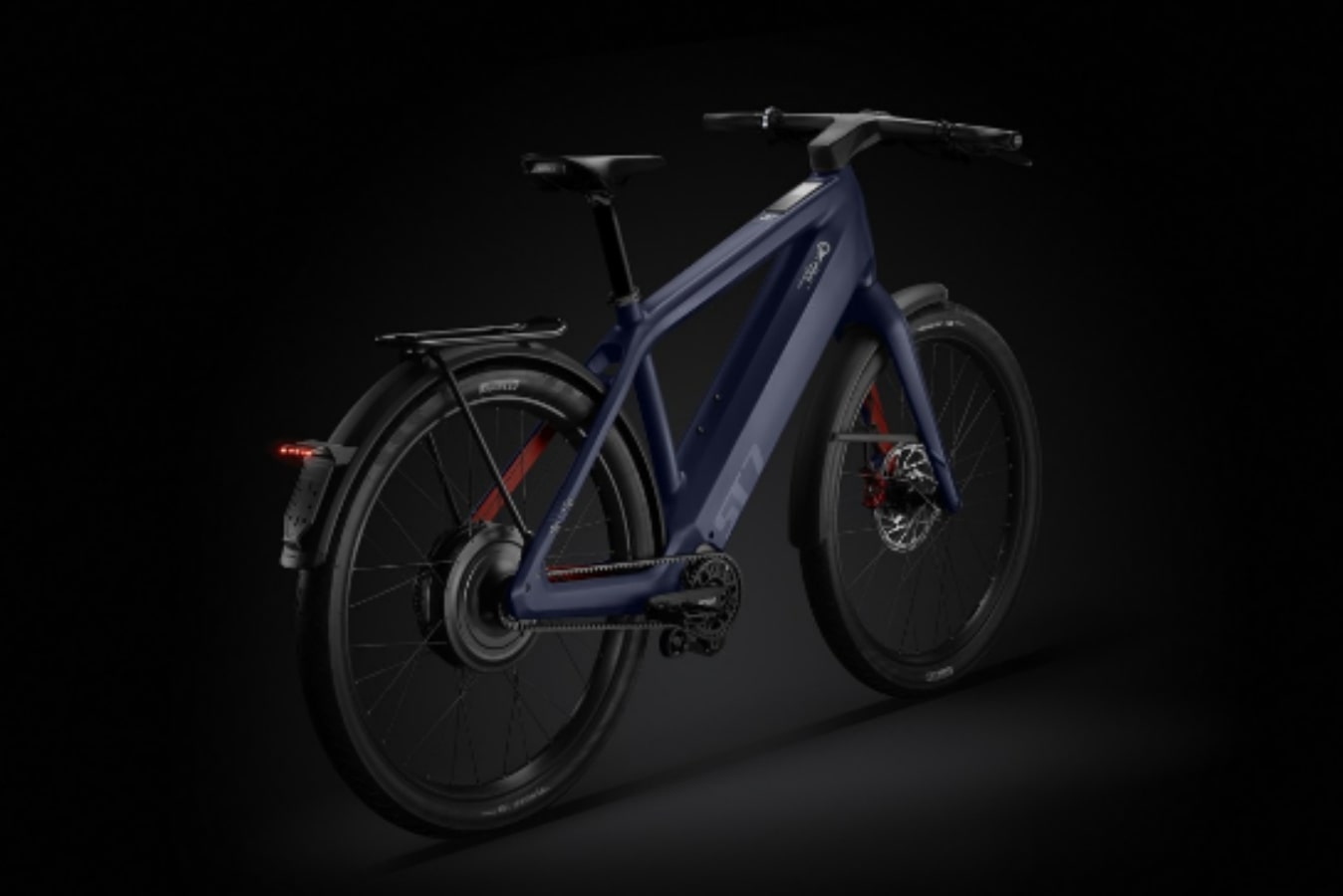 E-bike baru Stromer ST7 memiliki sistem pengereman anti-lock terintegrasi, ban 27,5 inci, dan lampu depan untuk pengendaraan yang nyaman dan aman. Ini memiliki garpu suspensi opsional dan platform seatpost suspensi.