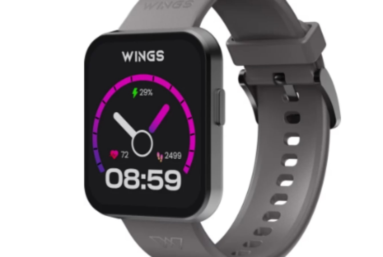 Model jam tangan pintar Wings Meta dilengkapi dengan tali silikon dan hadir dalam berbagai pilihan warna. Ini termasuk varian hitam, biru, dan abu-abu.