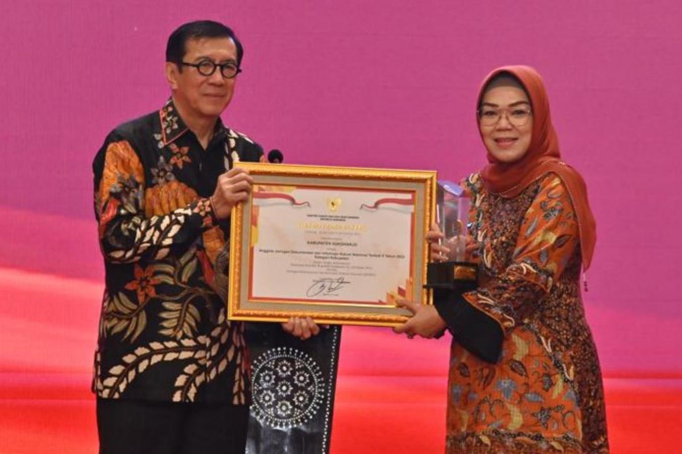 Sukoharjonews.com (Sukoharjo) – Pemkab Sukoharjo kembali menorehkan prestasi tingkat nasional. Kali ini, Sukoharjo menjadi Terbaik Nasional II sebagai Pengelola Jaringan Dokumentasi dan Informasi Hukum (JDIH) tahun 2022. Penghargaan diserahkan oleh Menteri Hukum dan HAM, Yasonna H Laoly dan diterima langsung Bupati Sukoharjo, Etik Suryani di Hotel Grand Sahid Jaya Jakarta Pusat, Selasa (18/10/2022).