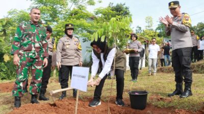 Sukoharjonews.com – Bupati Sukoharjo, Etik Suryani bersama Forkopimda mengikuti kegiatan kegiatan penanaman 1.000 pohon Polres….
