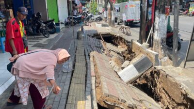 Sukoharjonews.com – Sebagian trotoar dan taman di Jalan Jenderal Sudirman tepatnya di depan Pasar Ir…