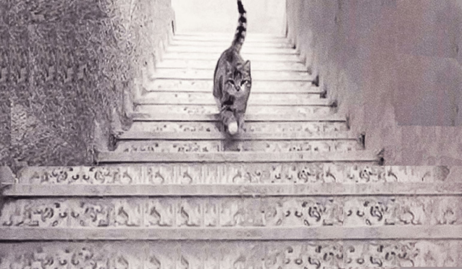 2. Kucing itu menuruni tangga