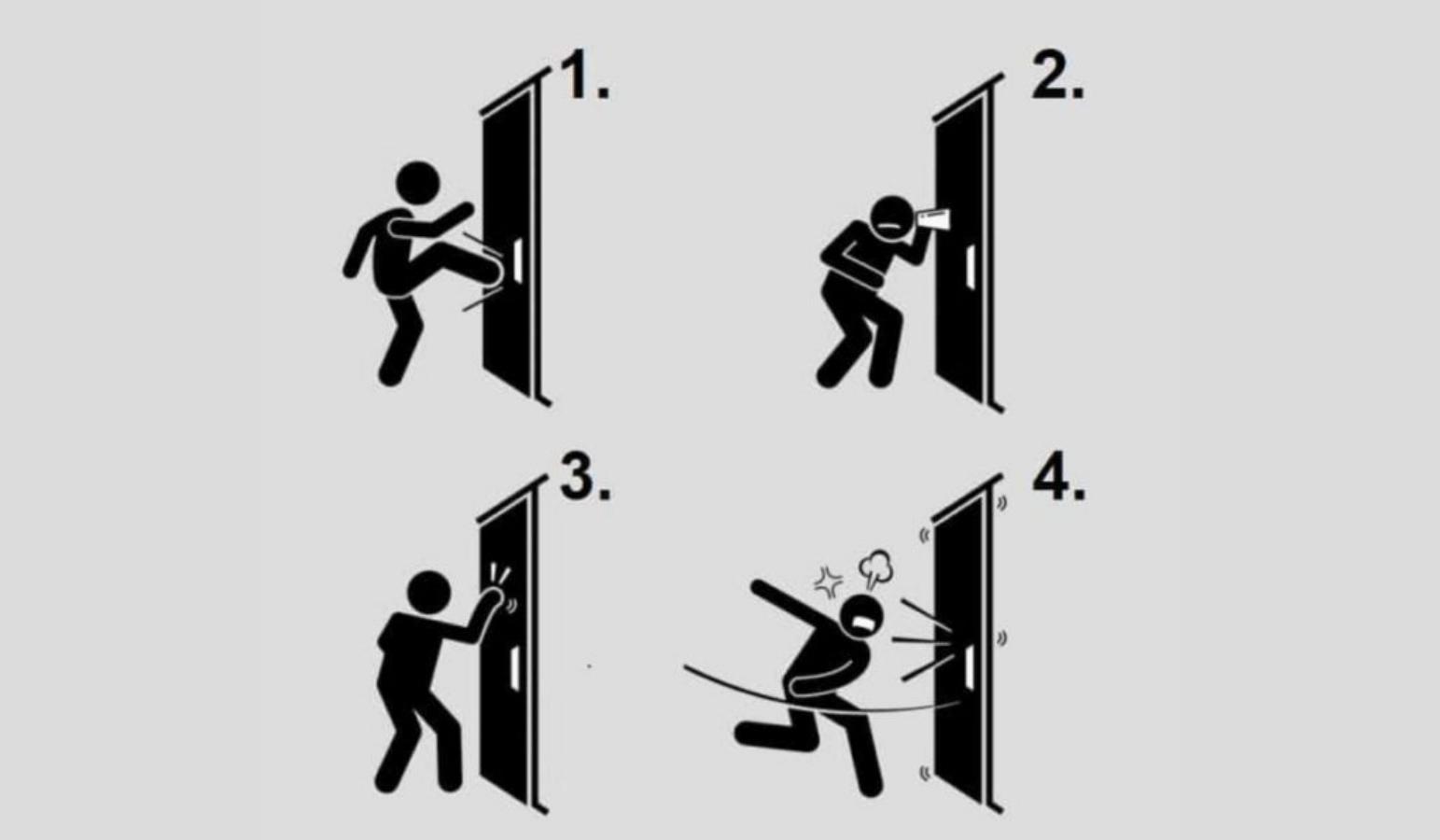1. Anda memaksa pintu dan mencoba masuk