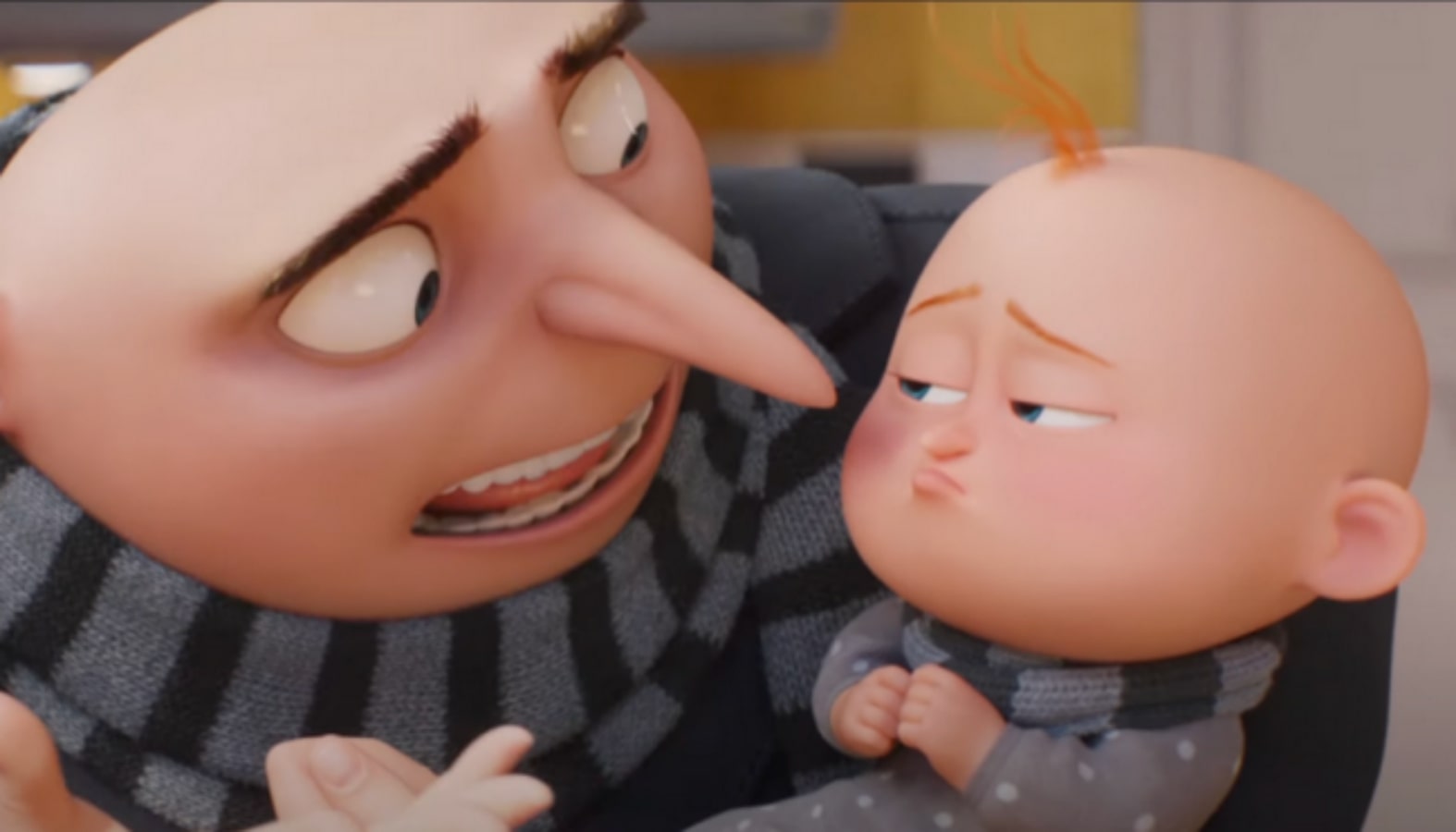 Film pertama menampilkan Gru mengadopsi tiga anak perempuan, sedangkan film kedua menampilkan Gru menemukan cinta dengan Lucy Wilde (disuarakan oleh Wiig). “Despicable Me 3” memiliki pengungkapan yang mengejutkan dengan kemunculan saudara kembar Gru yang telah lama hilang, Dru (juga disuarakan oleh Steve Carrell). Di film keempat, Gru dan Lucy menyambut anggota baru di keluarga: putra mereka, Gru Jr.