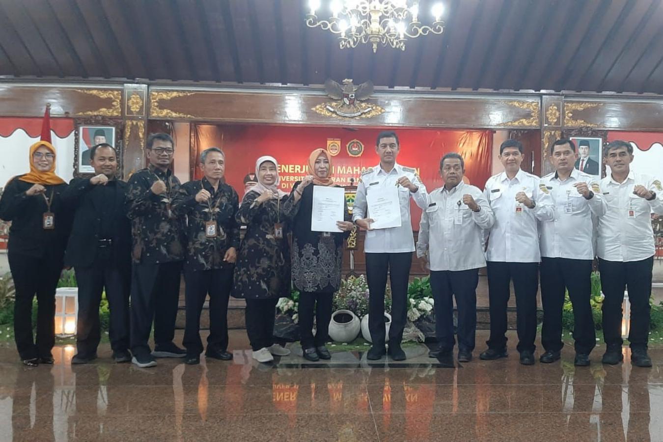Proses serah terima mahasiswa KKN dilakukan di Pendopo Graha Satya Praja (GSP) Pemkab oleh Rektor Univet, Prof Farida Nugrahani dan diterima oleh Wakil Bupati Sukoharjo, Eko Sapto Purnomo, Rabu (30/7/2025).