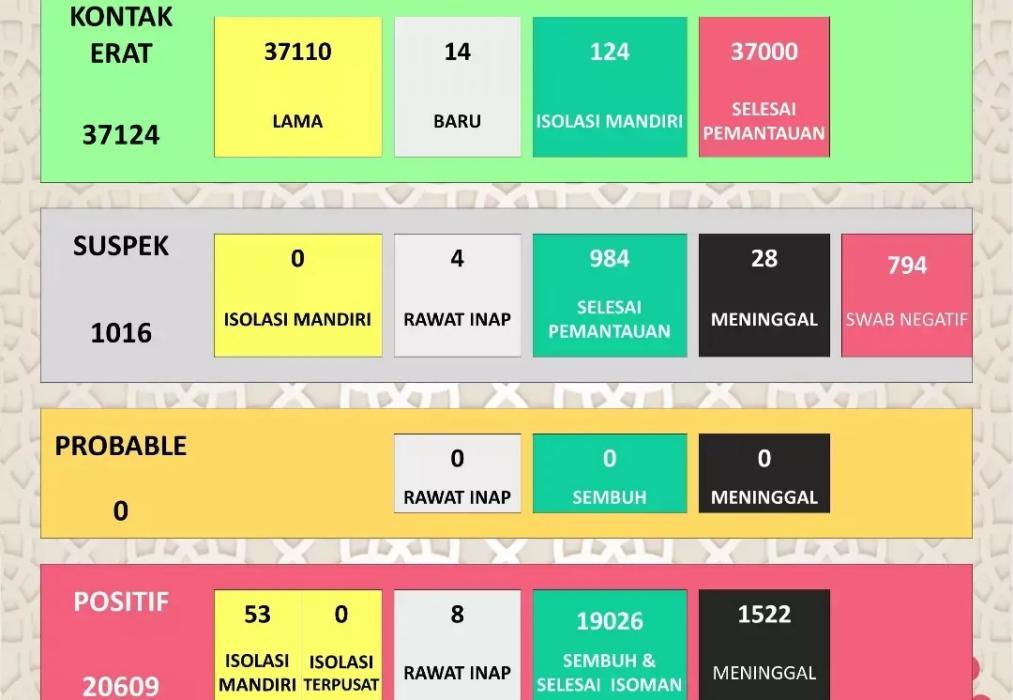 Sukoharjonews.com (Sukoharjo) – Update data kasus Corona di Kabupaten Sukoharjo per 14 April 2022, ada kenaikan 11 kasus baru dalam sehari. Saat ini, akumulasi kasus positif corona di Sukoharjo menjadi 20.598 dari sebelumnya 20.587 kasus (update per 13 April 2022). Untuk kasus positif sembuh ada kenaikan 23 sehingga totalnya menjadi 19.008 kasus. Sedangkan untuk positif meninggal naik satu sehingga totalnya menjadi 1.522 kasus.