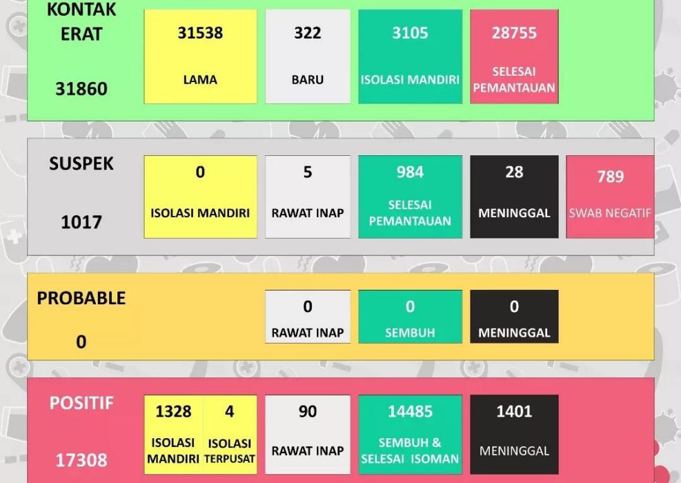 Sukoharjonews.com (Sukoharjo) – Update data kasus Corona di Kabupaten Sukoharjo per 23 Februari 2022, ada kenaikan 166 kasus baru dalam sehari. Saat ini, akumulasi kasus positif corona di Sukoharjo menjadi 17.308 dari sebelumnya 17.142 kasus (update per 22 Februari 2022). Untuk kasus positif sembuh ada kenaikan 48 sehingga totalnya menjadi 14.485 kasus. Sedangkan untuk positif meninggal tidak ada kenaikan sehingga totalnya tetap 1.401 kasus.