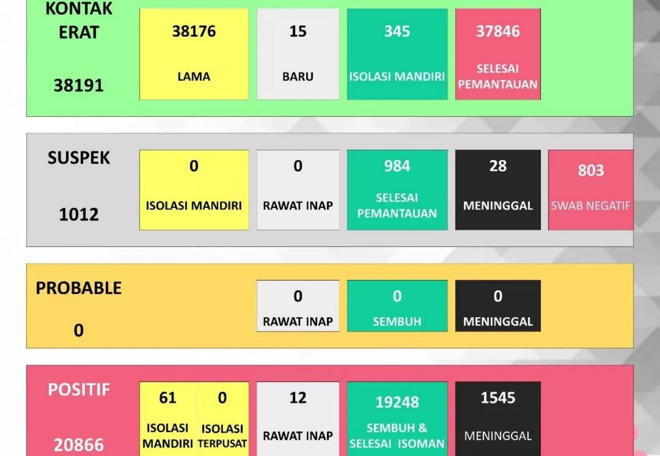 Berdasarkan data Dinas Kesehatan Kabupaten (DKK) Kabupaten Sukoharjo, saat ini kasus positif aktif naik menjadi 73 kasus. Terdiri dari 61 orang isolasi mandiri dan 12 orang rawat inap dirumah sakit. Tercatat, tidak ada suspek corona yang menjalani rawat inap di rumah sakit.