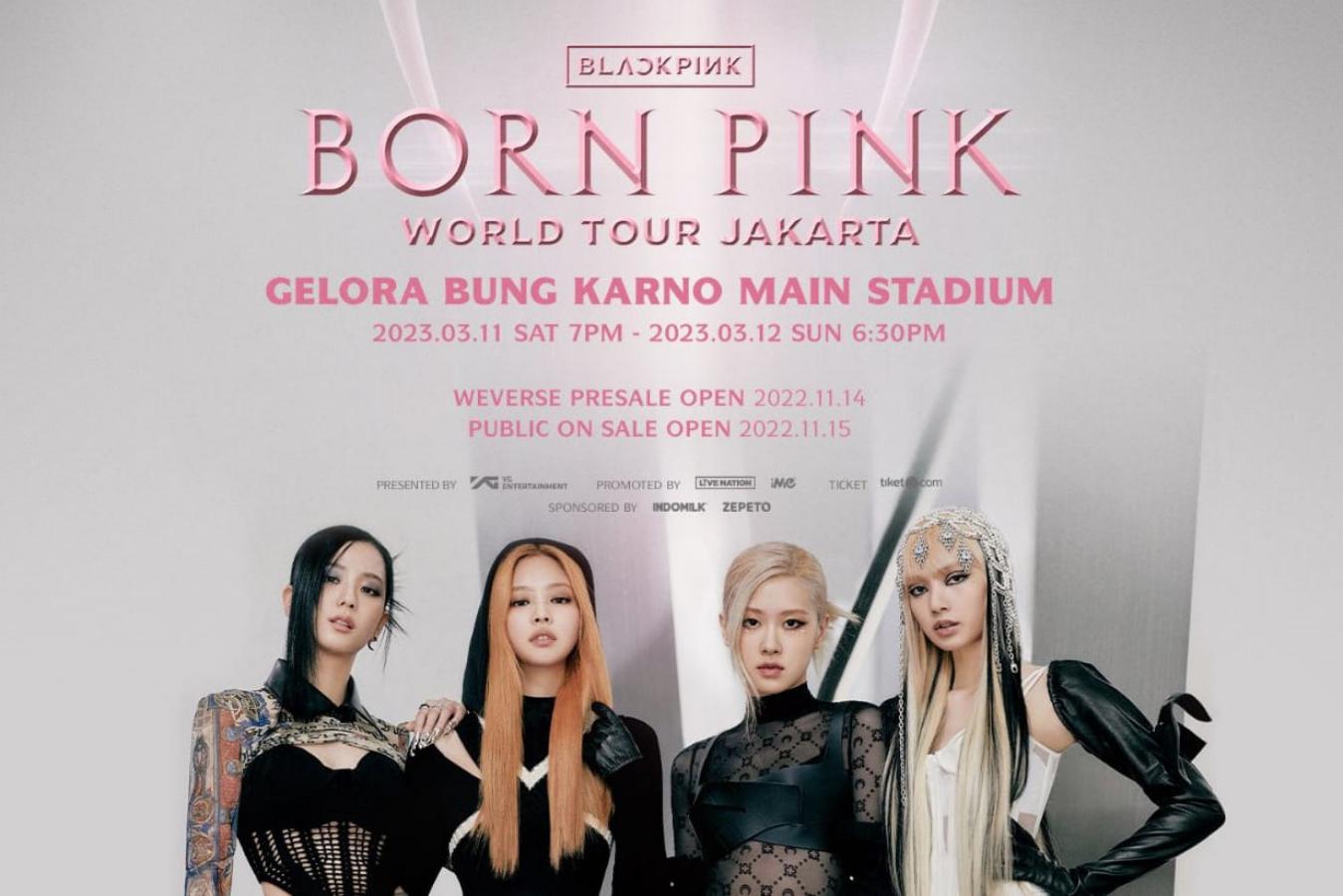 Konser bertajuk Blackpink World Tour (Born Pink) tersebut akan diselenggarakan pada pukul 19.00 WIB pada 11 Maret, sedangkan pada 12 Maret akan diselenggarakan pukul 18.30 WIB.