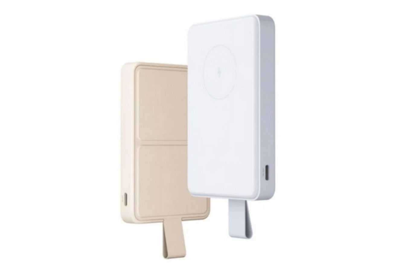 Bank daya memiliki standar bawaan. Oleh karena itu, dapat digunakan sebagai dudukan pengisi daya nirkabel. Bagian belakang aksesori memiliki lapisan kulit. Hadir dalam dua warna yakni Porcelain White dan Clear Sky Blue.