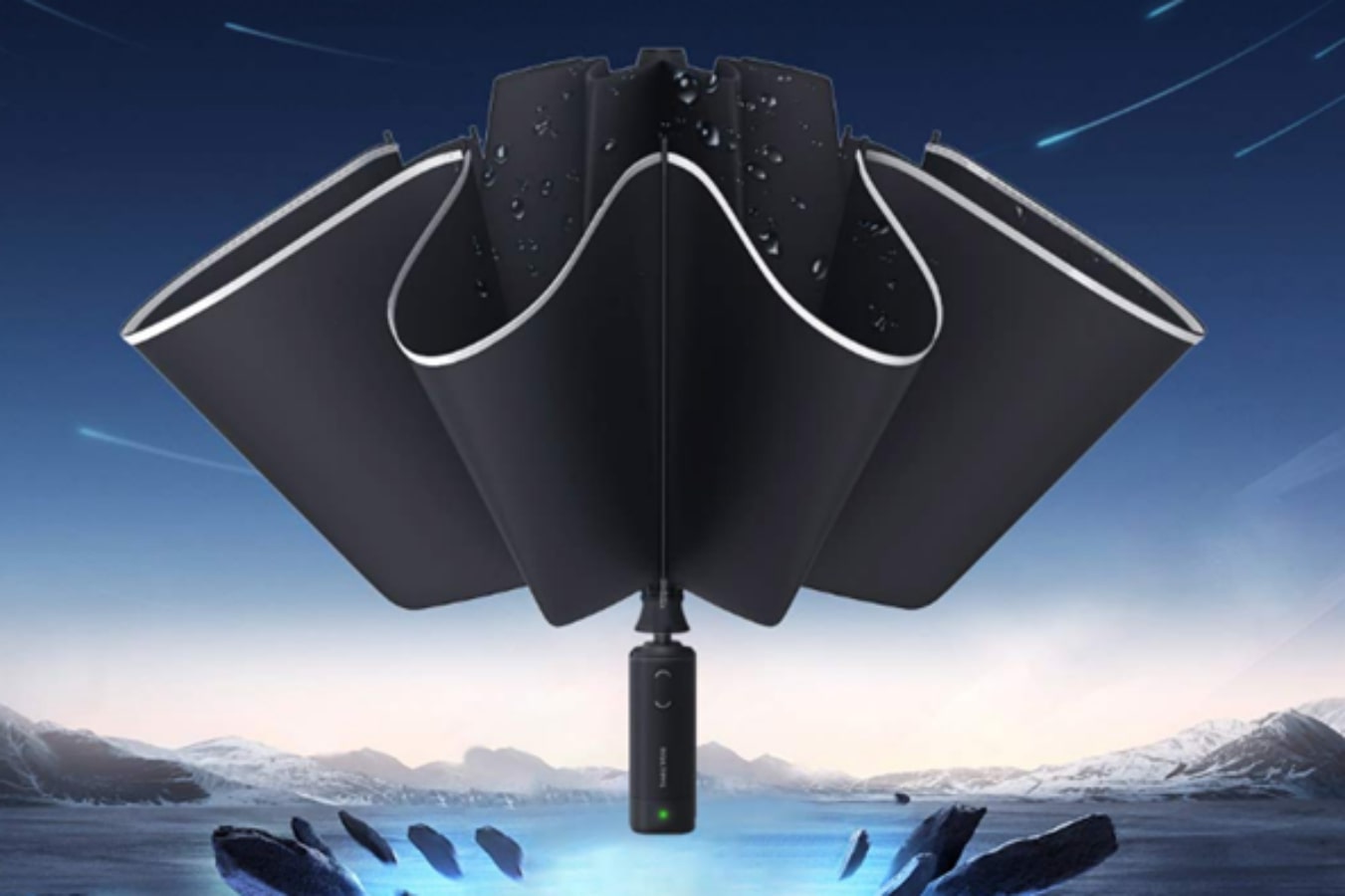 Menurut Risetime, desain payung didasarkan pada pertimbangan komprehensif terhadap kinerja dan keamanan perangkat secara keseluruhan. Menggunakan desain buka tutup terbalik dan ketika dilipat, permukaan basah ada di dalamnya. Pegangan payung tahan air IPX4.