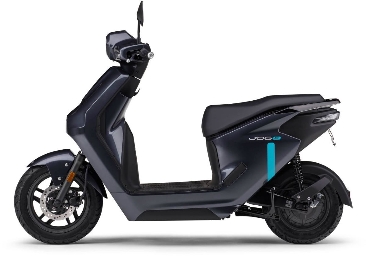 JOG E dilengkapi dengan lampu LED di sekeliling, meteran digital, kombinasi rem cakram depan dan rem tromol belakang, kompartemen penyimpanan depan yang dapat menampung botol air 500ml dan port USB-A untuk mengisi daya perangkat, serta area penyimpanan di bawah jok yang dapat menampung barang-barang umum.