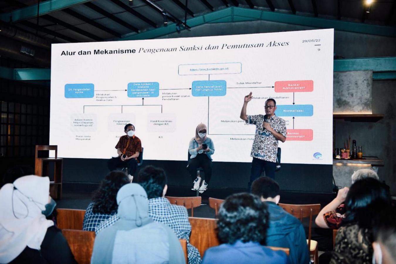 Terkait isu mengenai Kementerian Kominfo dapat “mengintip” percakapan setelah PSE melakukan pendaftaran adalah informasi yang tidak benar. Hal itu diatur dalam Peraturan Menteri Kominfo No. 5 Tahun 2020 tentang Penyelenggara Sistem Elektronik Lingkup Privat dan perubahannya (PM Kominfo 5/2020) tidak memberikan kewenangan bagi Kementerian Kominfo untuk secara bebas mengakses percakapan pribadi masyarakat.